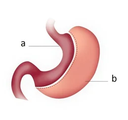 Au cours de cette intervention, le volume de l'estomac est réduit et la partie externe de l'estomac est retirée, ne laissant qu'un tube allongé (figure 3). Cela réduit également considérablement la sensation de faim, car les capteurs de la faim se trouvent dans la partie retirée de l'estomac.
